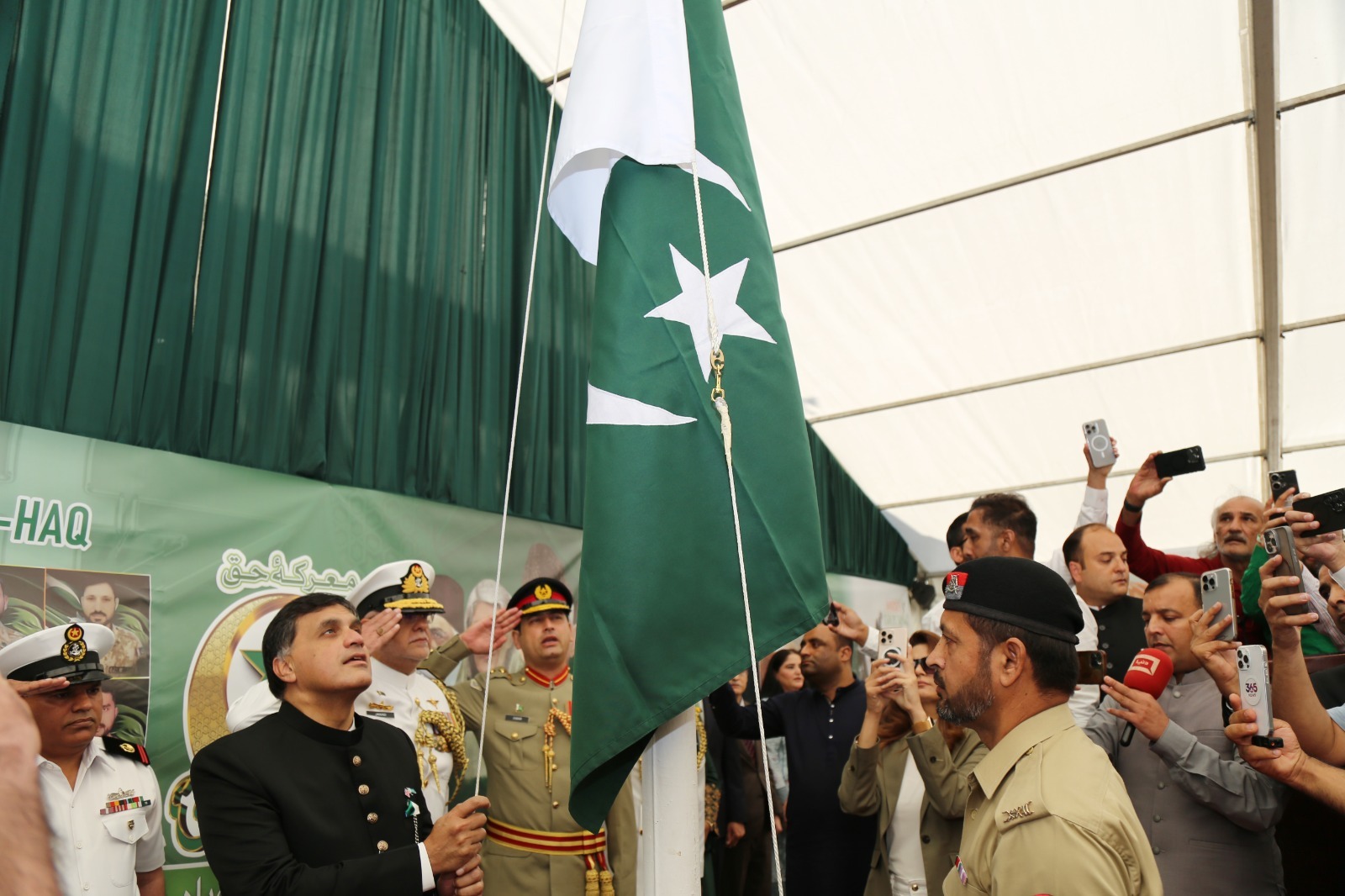 Pakistan High Commission, London celebrated 78th Anniversary of the Independence Day with traditional zeal and enthusiasm today. The day also marked the success of Operation Bunyanum Marsoos and celebration of Marqa-e-Haq. High Commissioner of Pakistan to UK, Dr. Mohammad Faisal hoisted Pakistan flag to the tune of National Anthem. The special ceremony commenced with the recitation of the Holy Quran. Messages of the President, the Prime Minister and the Deputy Prime Minister / Foreign Minister of Pakistan were read.